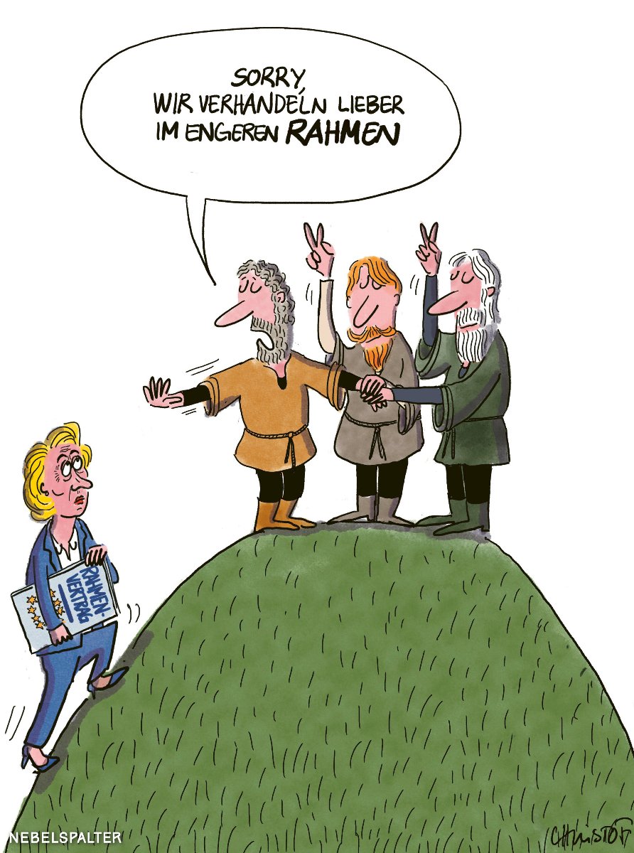 Dieser Kalender gehört an jede Wand. Mit 12 bissigen Karikaturen kommentiert Zeichner Jürg Kühni das Verhältnis der Schweiz zur EU.