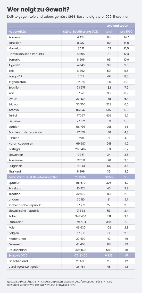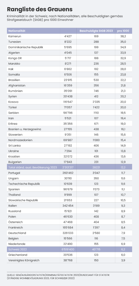 - Oder anders gesagt: Welche Staatsbürger beschäftigen unsere Polizei und Gerichte am meisten? Und welche machen am wenigsten Schwierigkeiten?